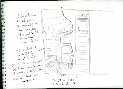 It became after adding the placeholder text that the article size I'd originally planned would be too thin. When the text is 7pt size you can only get a few words in one line. So I'm changing the columns so that they each utilize 2 of the over column widths spliting the page into 3rds instead of 6ths. However I am now aware that the space between the back of the car and the left edge of the article will be thinner. I may have to make further changes once the image is dropped in.